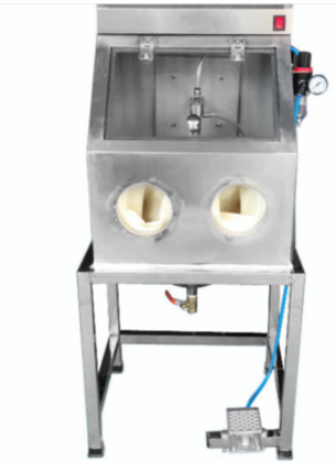 This manual control ensures that the sandblasting is perfectly uniform across the entire piece, reaching every curve and crevice with absolute consistency.